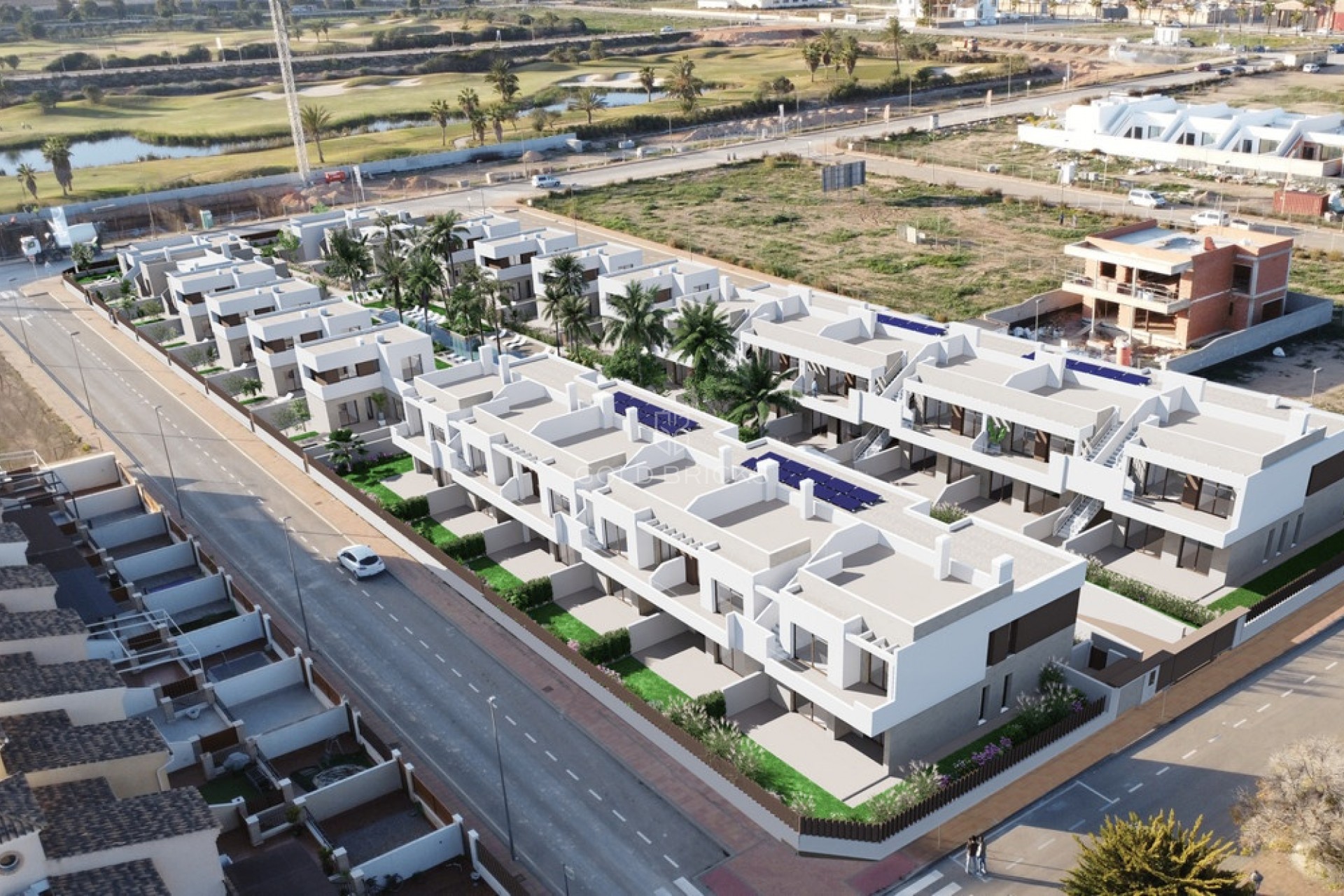 38 woningen in een afgesloten complex met een gemeenschappelijk zwembad, aangelegde wandelpaden, ondergrondse parkeergarage en bergingen. Fase 1: 19 woningen 12 bungalows: 6 woningen op de begane grond met tuinen en 6 woningen op de bovenverdieping met terrassen en solaria. 7 vrijstaande villa's: 4 tweeverdiepingen villa's met percelen van 201 m². 2 bungalowvilla's met percelen van 273 m². 1 hoekvilla met een perceel van 355 m². Alle woningen hebben een ondergrondse parkeerplaats en een berging. Oplevering Fase 1 Tweede kwartaal 2026, inclusief gemeenschappelijke ruimtes, zwembad en ondergrondse verdieping.