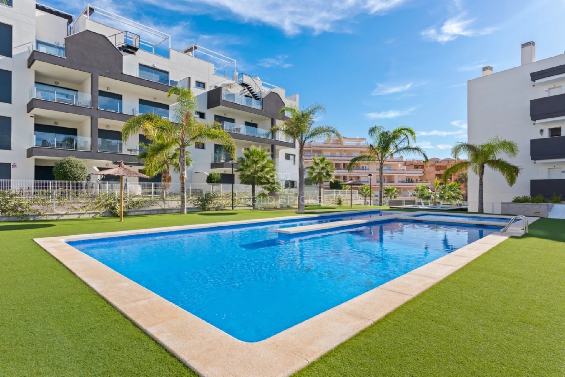 Apartament składa się z jasnego i przestronnego, otwartego salonu , który płynnie przechodzi w stylowy salon i w pełni wyposażoną kuchnię, idealną do relaksu lub przyjmowania gości. Z dwiema przestronnymi sypialniami , wbudowanymi garderobami i dwiema eleganckimi łazienkami (jedna przylegająca do sypialni głównej) dom ten został zaprojektowany z myślą o beztroskim życiu.