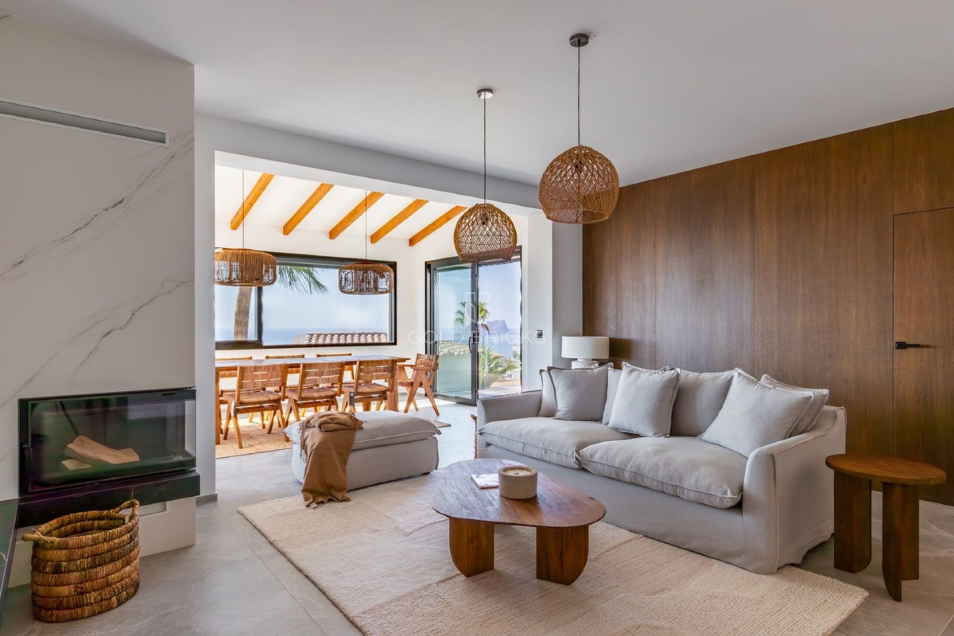 Discover this stunning modern villa, an architectural gem located just 5 minutes by car from the center of Moraira, in an area with easy access to Cumbre del Sol. Recently renovated, this property of 412 m² built with 5 bedrooms, 3 bathrooms, a wine cellar, a pool, and a closed garage transcends the conventional, offering solid construction with material quality far superior to what is typically found in current new construction developments. Invisible Engineering and Comfort What sets this property apart is not only its aesthetics but also its technical foundation. The villa features high-performance graphite EPS thermal insulation, ensuring exceptional energy efficiency. Comfort is guaranteed with a high-efficiency water underfloor heating system in all spaces, powered by a Panasonic heat pump, which also allows cooling in the summer. Silence and perfect climate control are ensured by triple-glazed windows with aluminum profiles and technical mounting using EPDM strips to eliminate any thermal bridges. Noble Materials and Designer Finishes The interior is a display of tangible luxury. The floors and bathrooms are adorned with large-format porcelain tiles and sintered stone from prestigious Italian producers. Warmth is provided by natural oak veneer wall coverings over real wood panels, ensuring durability and an impeccable visual appearance. Special mention goes to the custom-made interior doors: solid, flush, and equipped with magnetic locks and fittings from the German manufacturer Simonswerk; regarded as the gold standard in carpentry for their robustness and timeless design. Technology and Gourmet Kitchen The kitchen has been designed for the most discerning, featuring premium Miele appliances (oven, induction cooktop, dishwasher) and refrigeration from the leading brand Liebherr. All furniture has been custom-made with Blum fittings. In addition, the home is fully integrated with the FIBARO Smart Home system, allowing remote control of zone climate control, lighting, blinds, and security from any mobile device. Dreamy Exterior Enjoy views of the Mediterranean Sea from a top-notch outdoor area. The private pool features heated water, counter-current swimming system, and saline chlorination with automatic pH regulation for minimal maintenance and maximum comfort. Located near the prestigious Lady Elizabeth school and some of the most spectacular areas of the Costa Blanca, this villa represents a unique opportunity for those seeking a second residence or high-level family home and a more exclusive Mediterranean lifestyle.