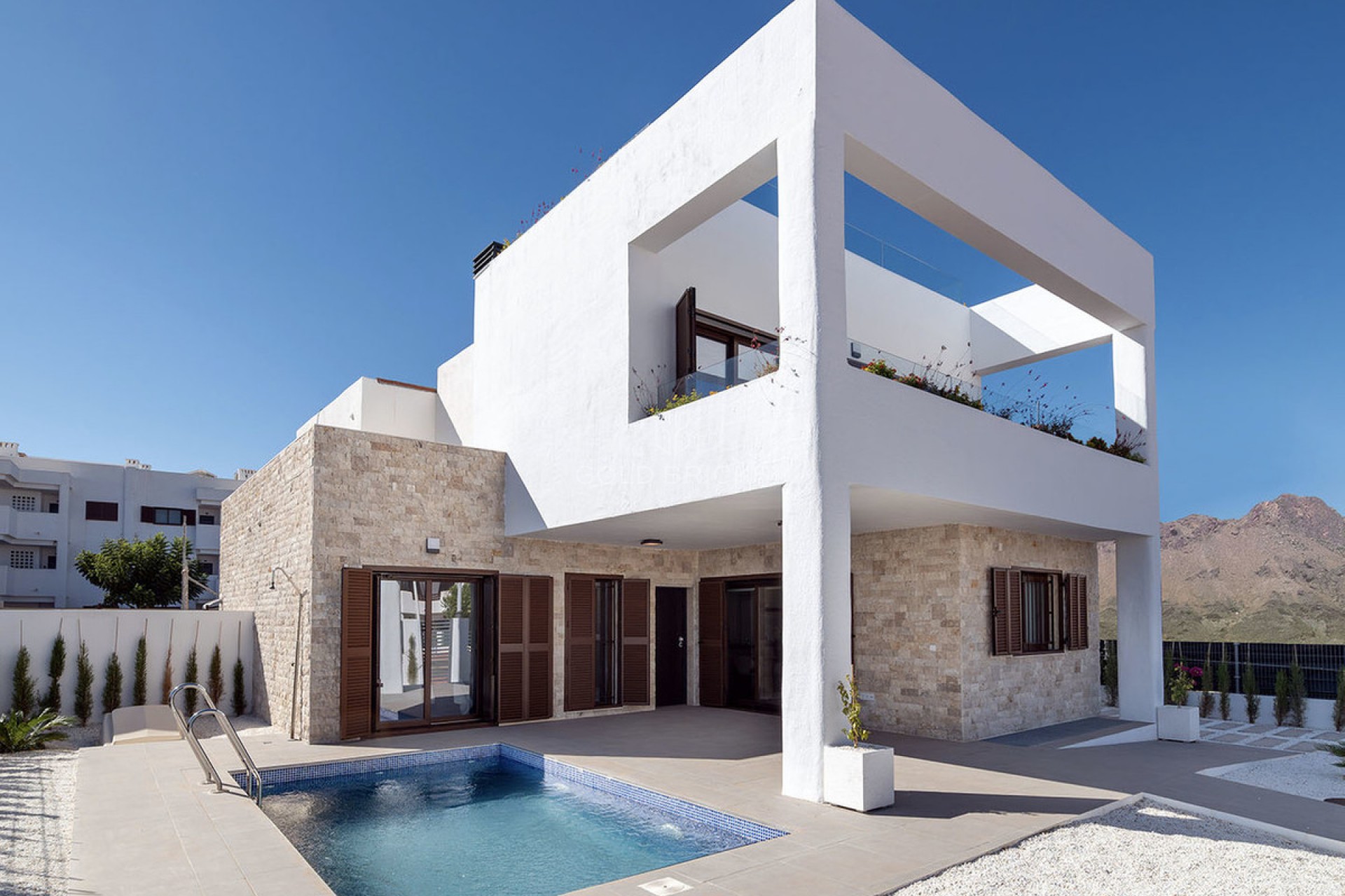 Semi-detached villas only 400 metres from the beaches of La Entrevista and Los Nardos - Mar de Pulpí Semi-detached 2 and 3 bedroom villas with large gardens and the possibility of a private swimming pool. from €383.000 Las Villas II de Mar de Pulpí is located in a privileged location, just 400 metres from the beaches La Entrevista and Los Nardos. Mar de Pulpí has everything you need t olive peacefully, equipped with a shopping centre with a supermarket, restaurants, shops and a sports centre. A project of 10 semi-detached villas of 2 and 3 bedrooms with 2 bathrooms and spacious plots with the option of a private swimming pool. Plot#1 - 3 bedroom / 2 bathroom - 271m2 build size - 265m2 plots size - south facing - 447,000€ Plot#3 - 2 bedroom / 2 bathroom - 228m2 build size - 266m2 plot size - south facing - 394,000€ Plot#4 - 2bedroom / 2 bathroom - 228m2 build size - 251 m2 plot size - south facing - 383,000€ * Build Size 228 m² * Plot Size 251 m² * Private Pool * Mains Water * Mains Electric * Telephone Possible * Internet Possible * Air Conditioning * Private Terrace * Private parking * 2 minutes drive to the beach * 2 minutes drive to the shops