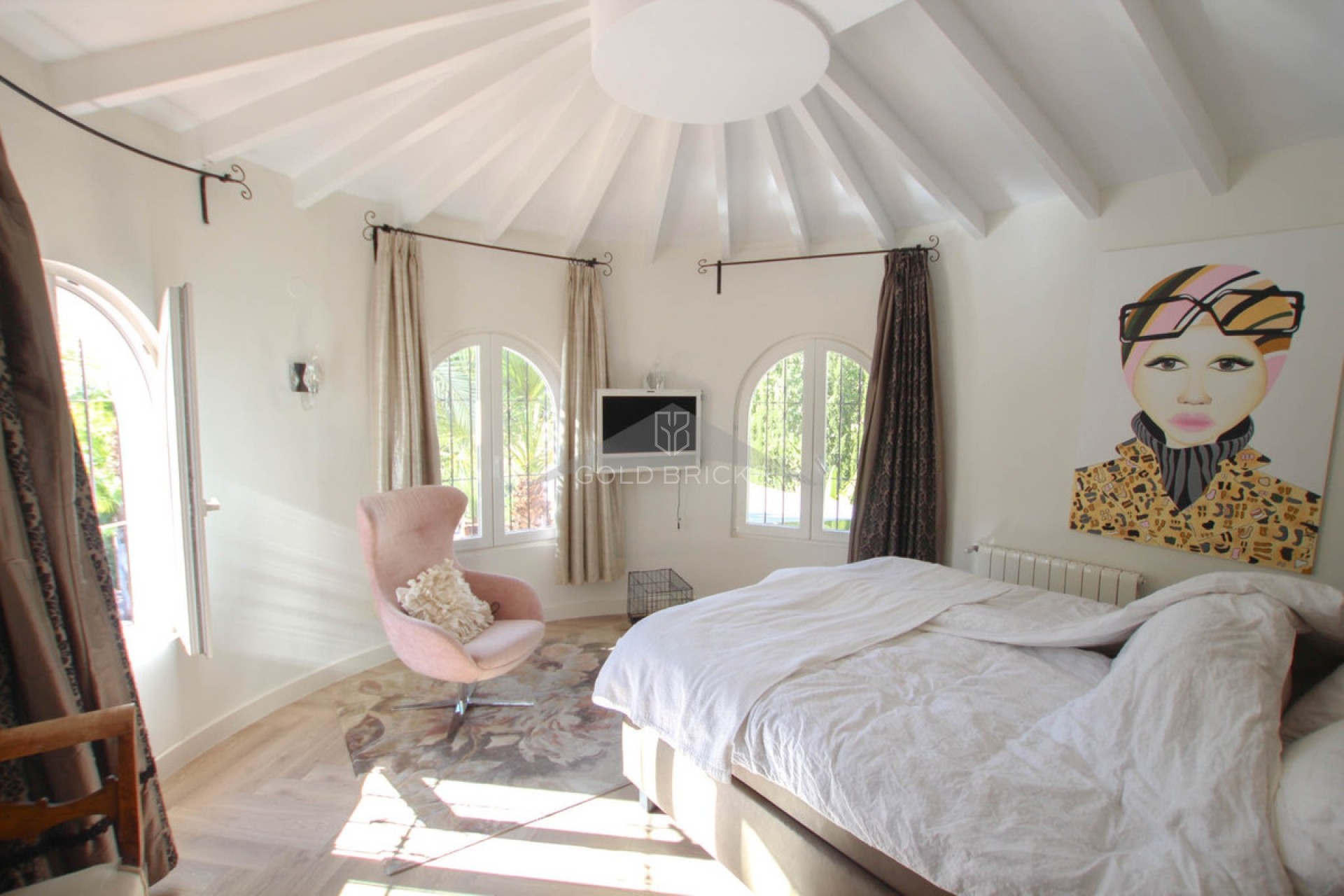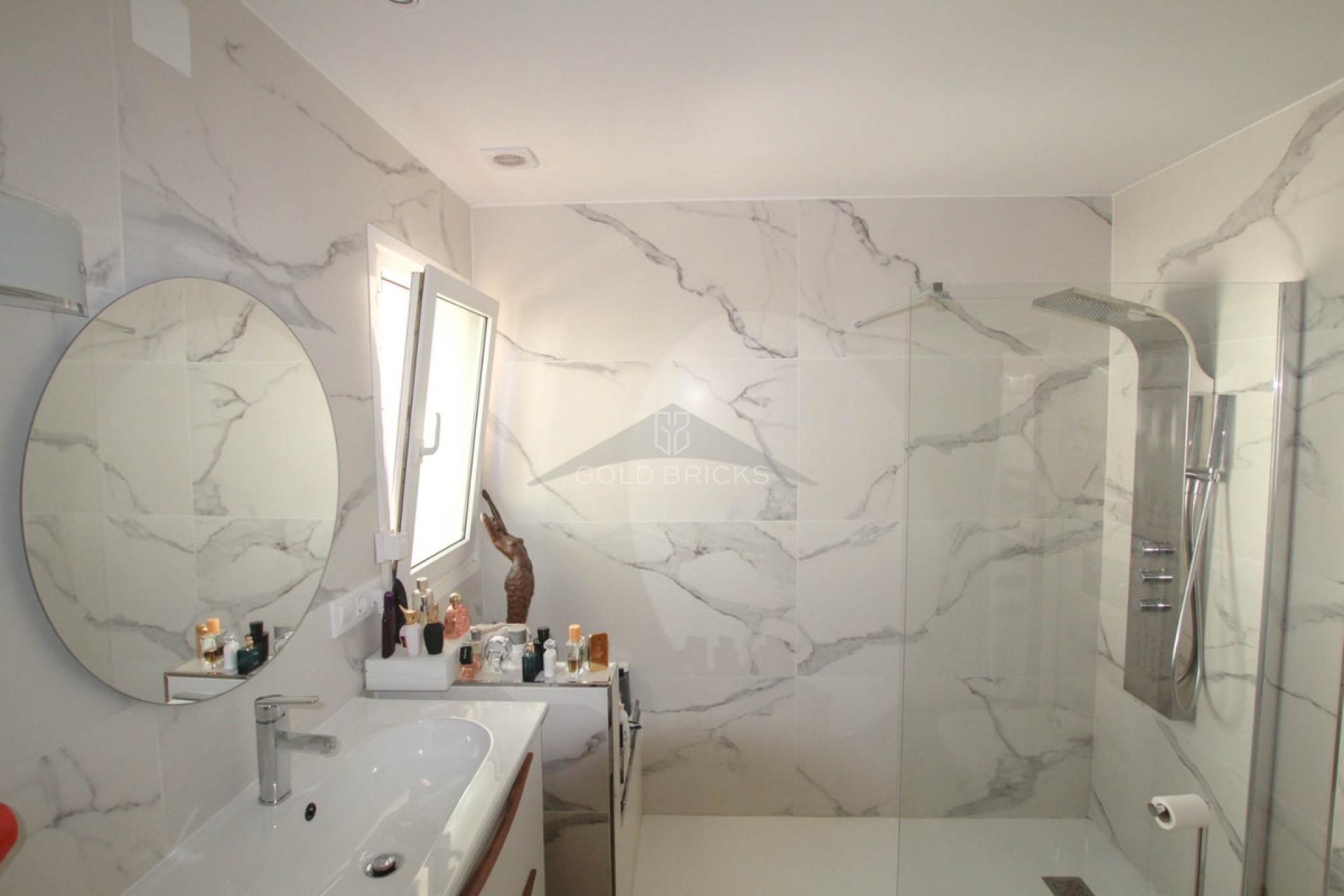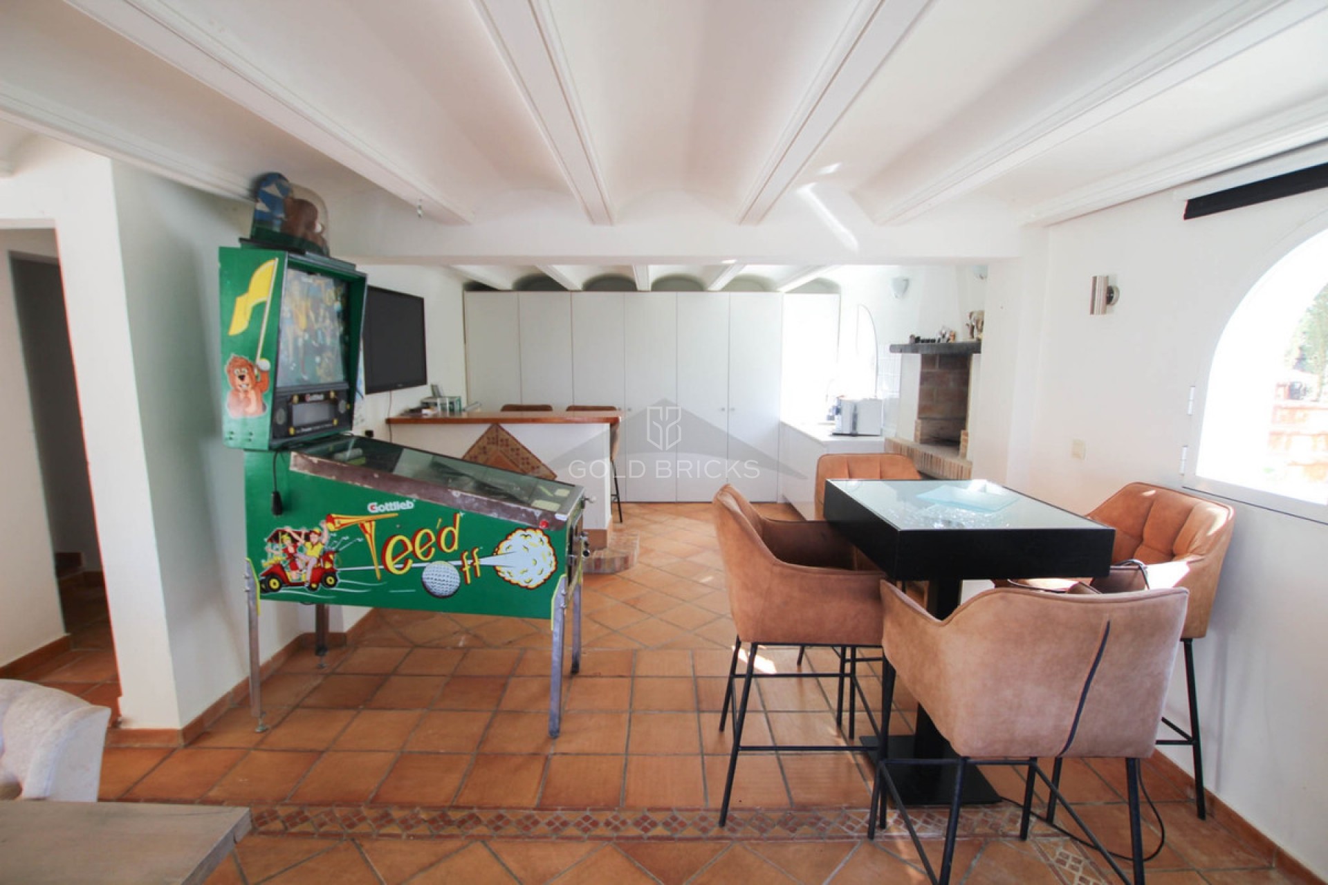 Spacious villa overlooking the Golf course in San Jaime, Benissa. Beautiful huge villa with views of the San Jaime golf course and a small sea view, privately situated in San Jaime. The property consists of a main residence and an apartment. The villa comprises a living room, dining room, equipped kitchen, 3 bedrooms, 2 bathrooms (1 of which is en suite), 2 guest toilets, storage/laundry room. The apartment has its own entrance, a combined living/dining room, kitchen, bedroom, and bathroom.