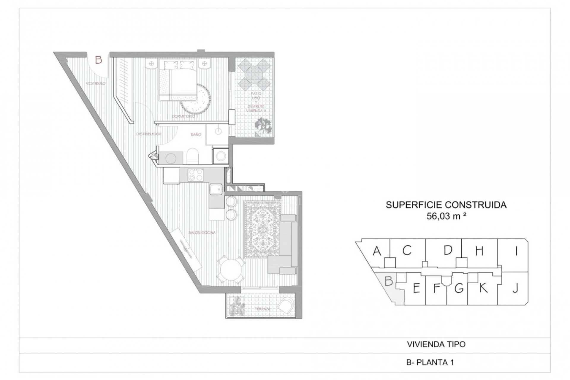 Här kommer ett nytt komplex med 33 lägenheter och kommersiella ytor att byggas. På bottenvåningen hittar vi de kommersiella ytorna och på varje plan kommer det att finnas 11 lägenheter som nås med hiss. Detta komplex kommer att innehålla bostäder med 1, 2 eller 3 sovrum. Varje lägenhet kommer att vara luftkonditionerad. En parkeringsplats och förråd kommer att tillhandahållas för varje hus under jord.