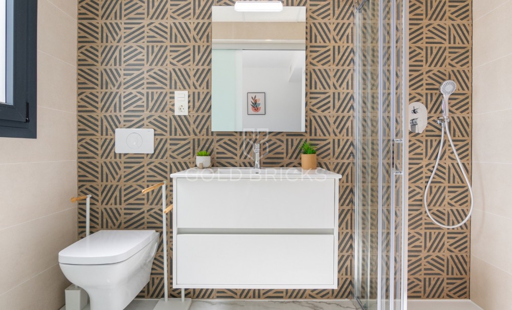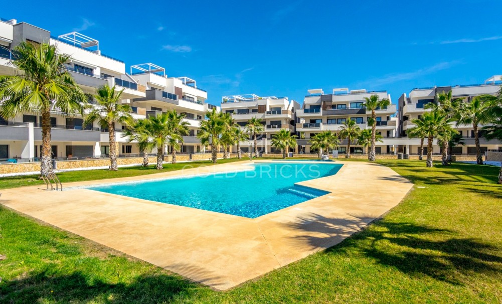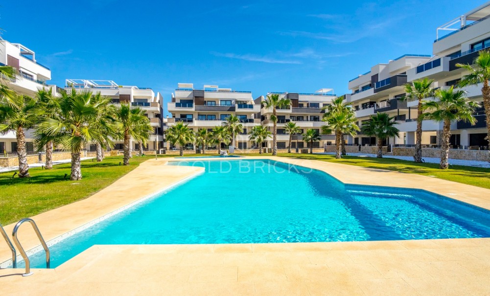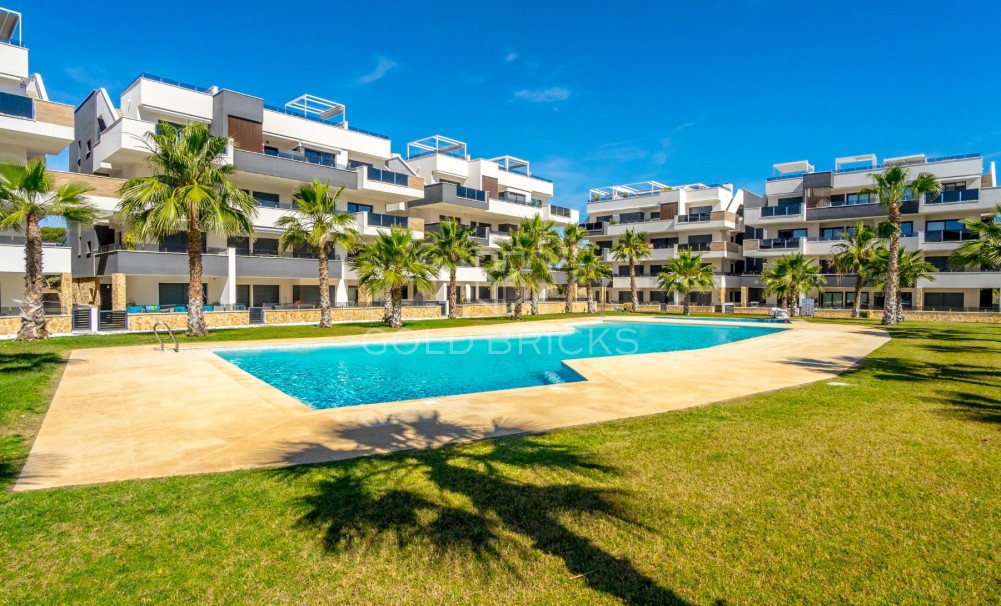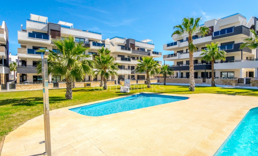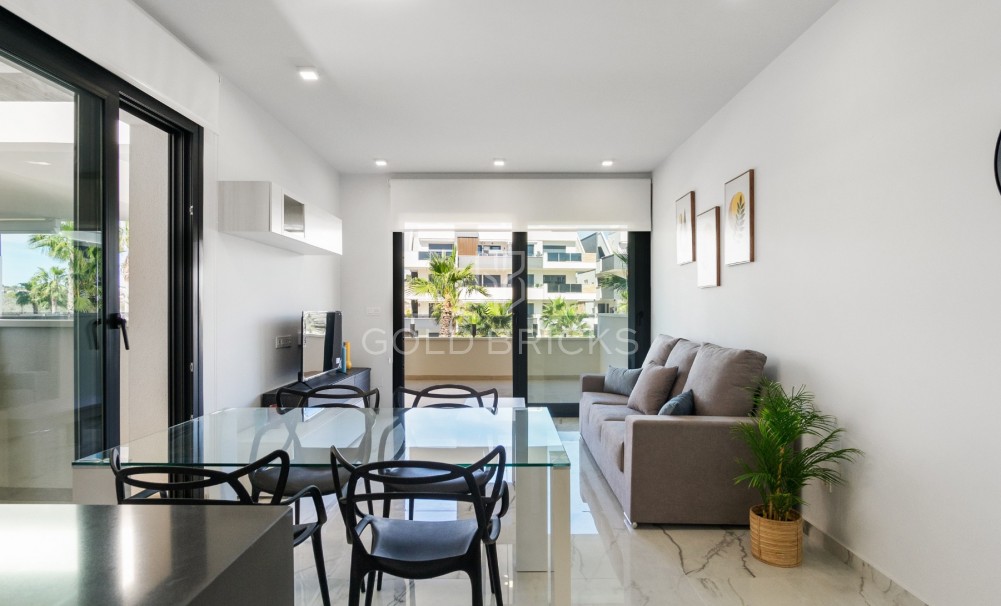 Denna helt nya hörnenhet med 2 sovrum och 2 badrum på första våningen färdigställdes i april 2024 och har aldrig använts av ägarna!!